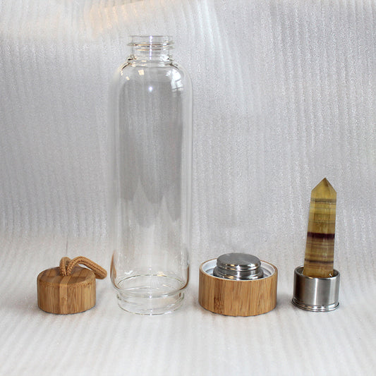 Natural Crystals Healing Stones, Borosilicate Glass, Drink Water Bottle